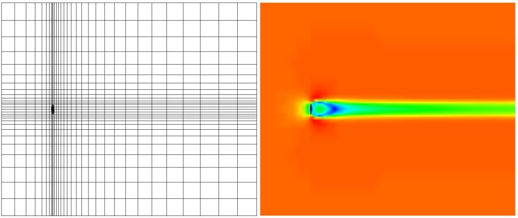 Wpływ siatki na dokładność wyników symulacji CFD jest przedstawiony tutaj na przykładzie analizy aerodynamicznej trójwymiarowej cienkiej płytki o grubości 5mm i średnicy 100mm. Wraz z gęstością siatki rośnie dokładność wyników, ale również czas obliczeń. Optymalnym rozwiązaniem jest zagęszczenie siatki w miejscach gdzie występują największe gradienty prędkości. Zgodnie z badaniami eksperymentalnymi współczynnik oporu aerodynamicznego dla płytki wynosi Cx=1.15. Badania symulacyjne z użyciem różnej gęstości siatek zostały przeprowadzone dla prędkość gazu wynosi 10 m/s, z użyciem modelu turbulencji RNG k-e. Na podstawie rozkładu ciśnienia oraz siły działającej na płytkę został wyznaczony współczynnik oporu aerodynamicznego zgodnie ze wzorem Cx=F/(0,5*p*w*A), gdzie p – gęstość, w – prędkość, A – powierzchnia.